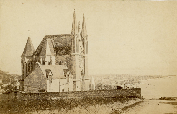 去此,复行八九里,绕至山顶,有白塔形如中土坟墓,高逾二丈,周约三丈,上抹白灰,下立石座。土人云,系某水师提督于数十年前沉于此海,其妻建此,以铭其功。又一小礼拜堂,内供天主母像,怀抱耶稣。左右悬挂油画小船若许,皆系水手所献者。当时有老幼妇女十余,皆跪而默诵。车立山顶,左望大海,右看通城,渔舟荡漾,炊烟上升,花飞叶落,阵阵凉风,大有中秋景象。又行十余里,山路崎岖,盘桓而下,回店早餐。