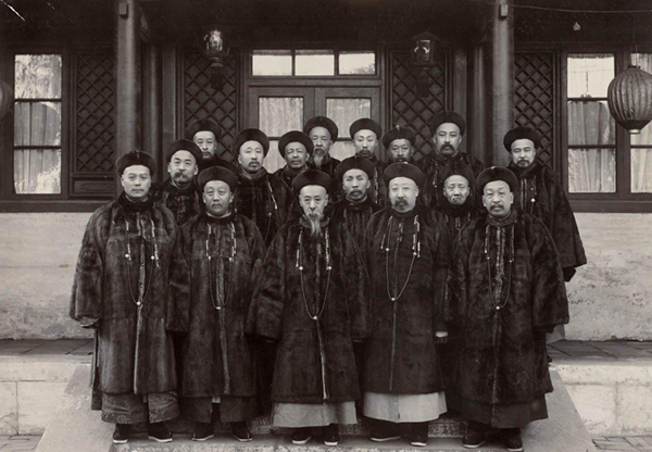 这张照片我在微博上看到过一次,出处未知,前排从左到右分别为:未知、那桐、王文韶、荣禄、瞿鸿机、联芳、唐绍仪、曾敬怡、美国公使康格。