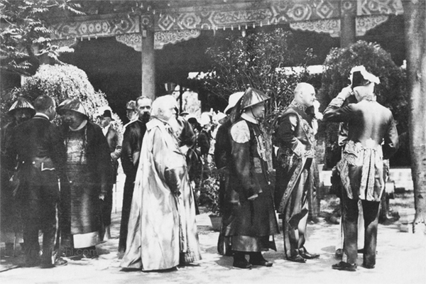 慈禧太后的照片送到法国使馆,那桐和吕班站在门口