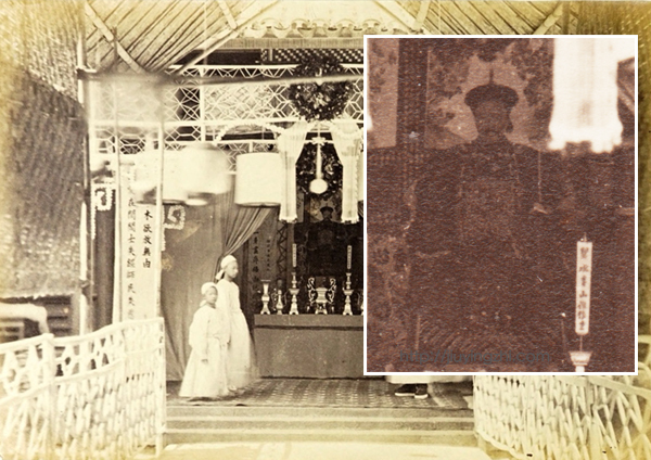 2009年的时候征集到两张照片,是清末一个大户人家的灵堂,通过挽联的内容我确定这是时任上海道台冯焌光的灵堂。后来同样内容的照片在市场上又出现过多次,因为这两张照片都曾被刊载于《远东》(The Far East)中,说是刊载,实际上是把洗印出来的照片粘在书中,所以照片在市场上才相对多见。今日获赠赵大编辑省伟的新书《〈远东〉杂志记录的晚清1876-1878》,其中对《远东》杂志的正文进行了翻译,发现其中有被我忽略了的冯焌光肖像。