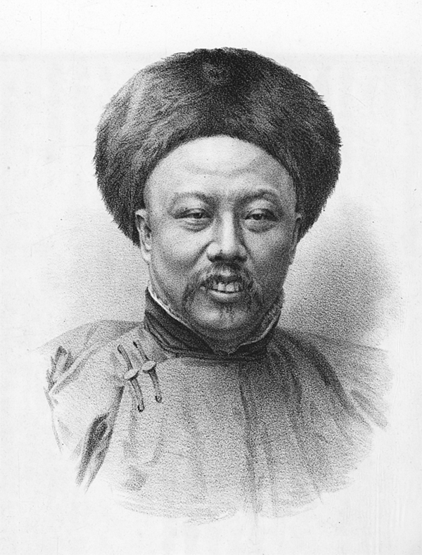 这张照片发表在1877年4月号上,冯焌光主持了洋枪队第一任队长华尔纪念堂的落成仪式,这座纪念堂在松江,文中说“我们早前曾费尽千辛万苦获得一张上海道台冯焌光的照片,不过遵照他本人的意愿,没有公开发表。本期的照片中,他站在人群正中央,即使在专门的摄影棚里都无法拍摄出比这张更好、更让人喜欢的冯大人肖像了。”这张合影因为也是在《远东》里刊登过,所以也不算少见,《字林西报》对华尔祠堂的落成仪式有详细的文字报道,但我以前一直都没留心,没想到里面就有不愿意刊登自己肖像的冯大人相貌。为此我还特意去翻了下微信的聊天记录,2017年曾和朋友讨论过他的照片,当时只有一张素描像可以确认是他。冯道台曾署理江南机器制造局局务,在上海创办求志书院,按说应该算是支持现代化设备的,但他又反对修铁路,实在矛盾。