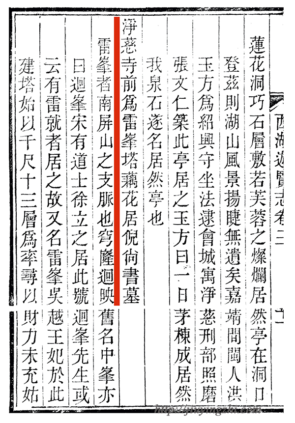 明《西湖游览志》中将雷峰塔、藕花居和倪尚书墓放在一个条目下