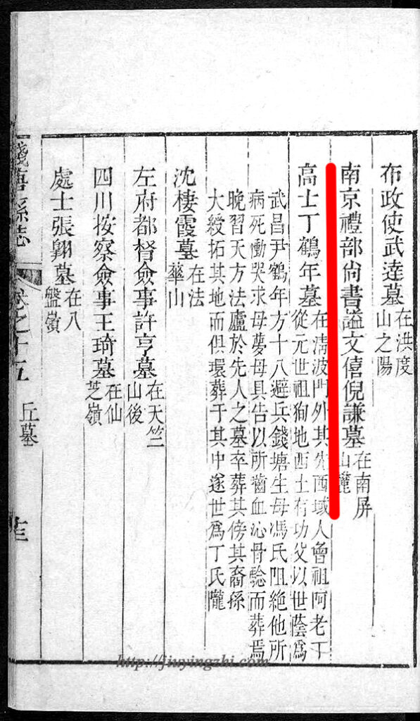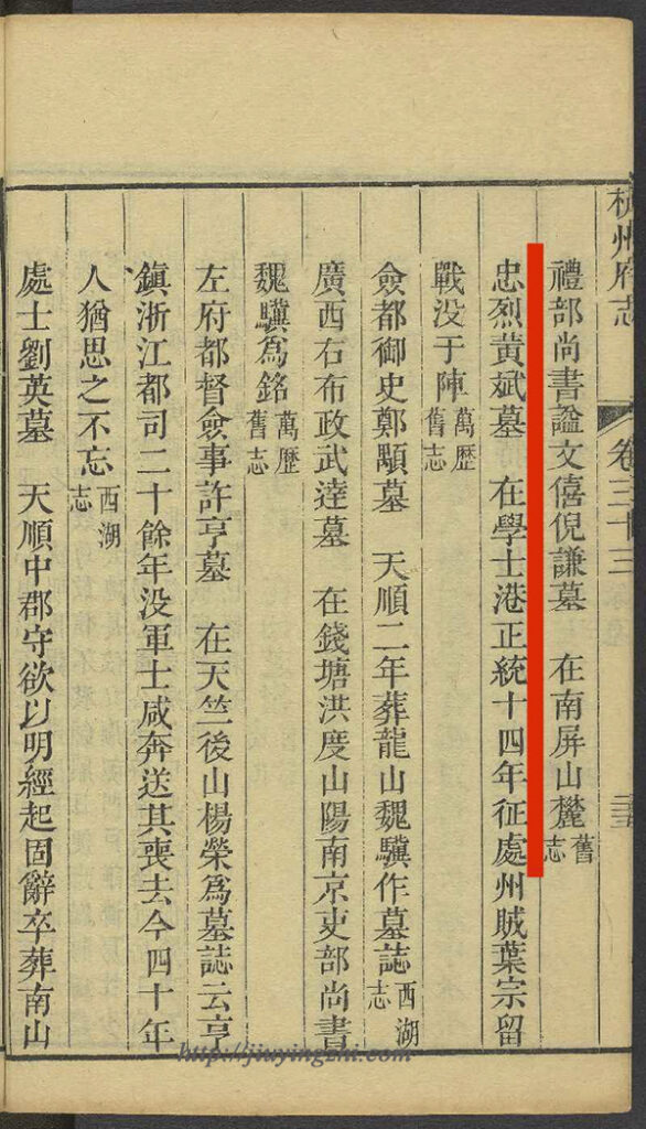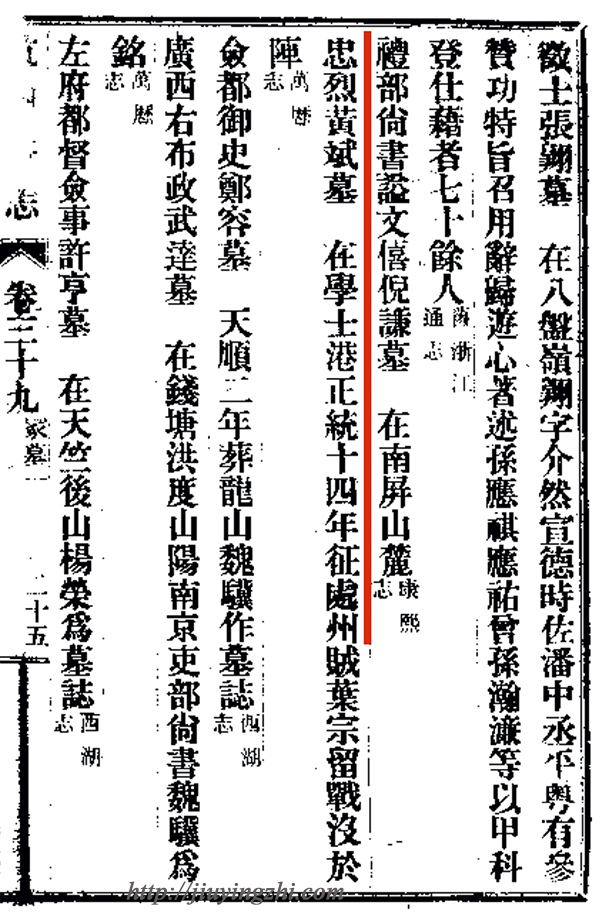 清光绪十四年《杭州府志》中的倪谦墓条目