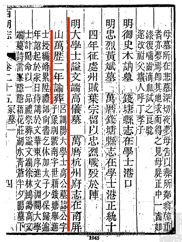 [15]裘琏、魏㟲撰.钱塘县志,清康熙五十七年,卷之十五“丘墓”,第十三面,美国哈佛大学燕京图书馆藏本。