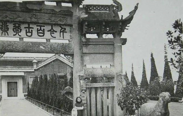 20世纪30年代杭州汪庄内的石牌楼,一面写着“千今百古琴巢”,可见一对石羊