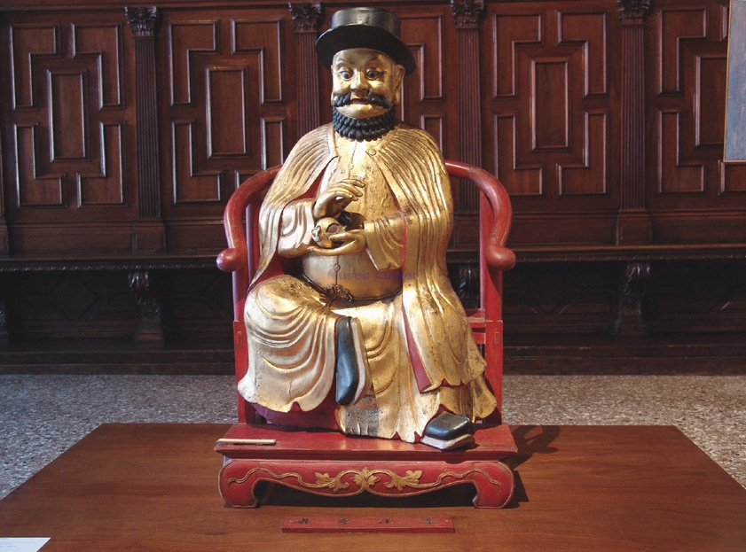 另外,在威尼斯的科雷尔博物馆(Museo Correr)现存一尊马可•波罗的木雕镀金彩绘像,据博物馆网站上介绍,这尊木雕像来自中国,制作年代大概是1800-1899年(真和没说一样)。互联网上很多言论说现存威尼斯这尊就是曾经华林寺的那尊。这两尊确实相似之处很多,可能出自同一位工匠之手,但质地不同(一个泥塑,一个木雕),另外文革时所有的泥塑已毁,不可能流入意大利。对比这两个“马可•波罗”像的照片可见,威尼斯那尊手势不同,且左手中放有一球;威尼斯那尊有腿的裤脚褶皱不同。