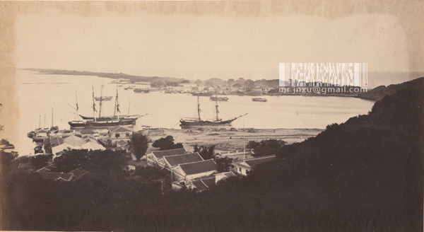 数日前朋友拿来四十张清末的蛋白照片,其中有一组照片相纸特殊(极薄),都裱在卡纸上,卡纸下方有法文的说明,拍摄于广州、厦门、福州、台湾等地,我估计时间在1870年左右。其中一张台湾的照片是在猴山(今寿山)上拍摄的打狗(今高雄)港北部,我很感兴趣,因为这是我见过的最早的台湾照片实物。