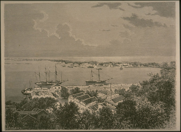 The Illstrated London News中收录的打狗港铜版画,据说是根据约翰·汤姆逊的照片绘制