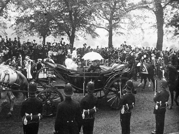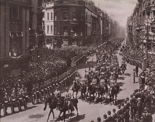 游行队伍中除了女王的马车,还有16辆马车分别由皇室成员以及来参加庆典的各国特使乘坐,其中第四辆马车上坐着比利时的查尔斯·德·利涅王子殿下(His Serene Highness The Prince Charles de Ligne)、荷兰的范·林登伯爵阁下(His Excellency Count van Lynden)、教皇特使桑布凯蒂主教(Monsignor Sambucetti),以及清政府派出的“头等出使大臣”张荫桓。没有多少记者注意到这位庆典上的中国人,在少得可怜的报道中也寻不见正面的报道:“中国特使在游行的前半段显得非常害怕,他与人群只隔着一道士兵和警察组成的人墙,无法理解他们的欢呼。路过蓓尔美尔(Pall Mall)时,他明显感到紧张,过了一会儿他才放松下来,坐在座位上,以一种有趣的怜悯之情看待这些西方的野蛮人。”[6]在中国的传统文化中官员出行时对围观群众强调的是“肃静”与“避让”,不允许出现这样的欢呼,但张荫桓毕竟当过三年的驻美、西、秘三国大使,记者这样的描写可能有相当的主观成分。