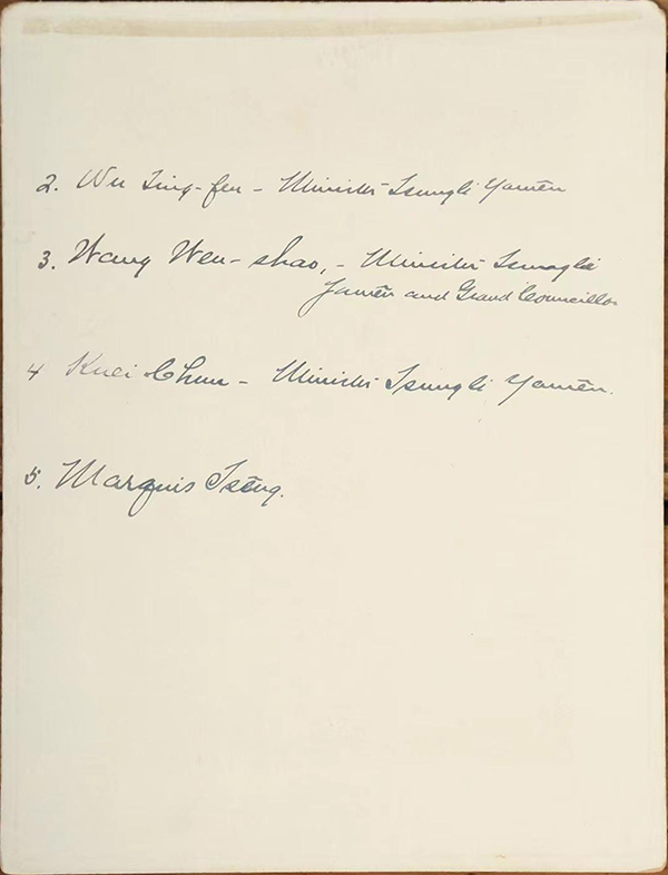 2 Wu Ting-fen, Minister Tseng li Yamên 3 Wang Wen-shao, Minister Tseng li Yamên and Grand Secretariat 4 Kuei Chun, Minister Tsung li Yamên 5 Marquis Tsêng