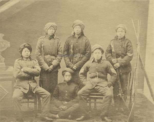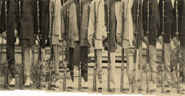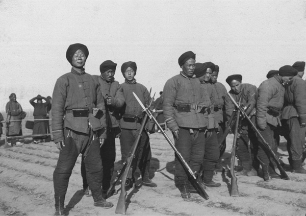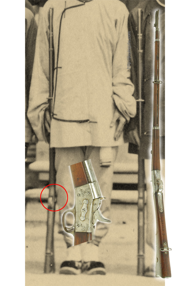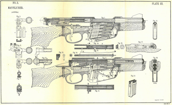 Mannlicher即中文文献里常说的“曼利夏”,名称源自“弹夹”的发明人,奥地利工程师费迪南·曼利夏(Ferdinand Ritter von Mannlicher, 1848 -1904)。他在1885年推出了一款采用直拉式枪机和弹夹结构的步枪,即曼利夏M1885(Mannlicher M1885),三年后他设计的新款步枪曼利夏M1888列装奥地利军队,并出口多个国家,同时也被多个国家仿制,其中就包括大清帝国。1890年李鸿章就曾建议江南机器制造局根据曼利夏M1888和德国的委员会88型(Gewehr 88)枪进行仿制,后来做出了一款新枪名为“快利”。“快利”的两种原型都有结构上的缺陷,所以这款国造步枪的寿命并不长,北洋新军编练成军后,在袁世凯的推动下,部队主要装备了进口的曼利夏M1888,这张照片也正是训练中的新军士兵。