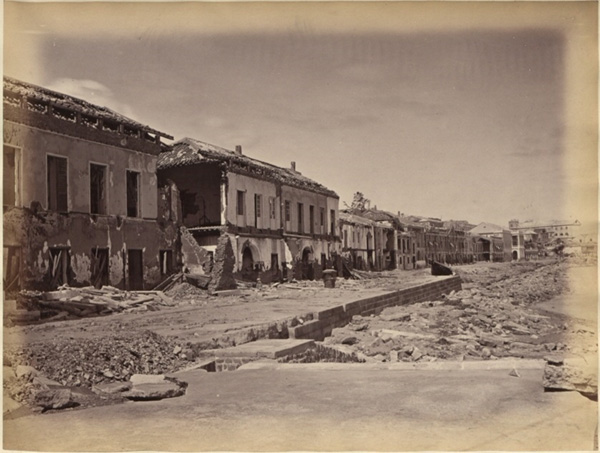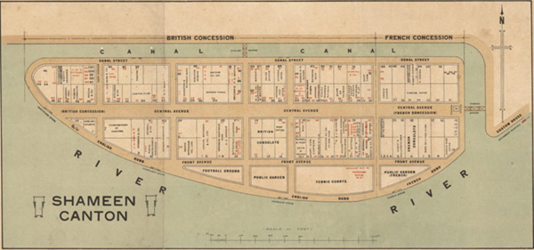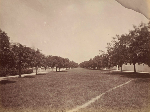 “英格兰桥”正对着现在的沙面四街,街道不宽,路边高大的树木投下大片的阴凉,沿着这条街道往南没走多远便豁然开朗,一条宽阔的大道横在眼前,路中间是花池,南国的天气让每一朵花每一棵草都骄傲地展示着生命力,俨然就是一个巨大的街心花园。似乎清代外国人在中国的几个租界都很注重公园,或者说公共绿地的建设,比如上海外滩北端,苏州河与黄浦江交汇处南岸的公共花园、汉口的江岸都是大片的绿地,都由一个特定的委员会管理,可供租界的外国人休闲。广州沙面的这片公共绿地称为“中央大道”(Central Avenue),现在则被称为“沙面大街”。负责种植和维护这片绿地的资金来自“广州花园基金”。这里的“广州花园”是指曾经在位于十三行南侧分别由美国人和英国人经营的两片公共绿地(美国花园和女王花园)[5],在1856年连带商馆被烧毁后清政府总共赔偿了2.5万银圆,其中的一半,即12817.53银圆赔给英方。1864年4月9日,英国驻广州总领事馆内召开了一次公共事务会议,委任Richard Carlowitz、James B. Deacon和George Moul三人为“广州花园基金”理事负责管理这笔赔款,同时通过一份决议将这笔钱中的一部分用来“植树和改善沙面的环境”[6],其余的部分存进香港的银行。最后有9000银圆被存在有利银行(Mercantile Bank of India, London and China)做一年期存款,年利率6%[7]。在园艺师A Ching的辛苦劳作下,最后在岛上种植了645棵树,花费483.75银圆,除了现在还能看到的大叶榕树外,还有蒲桃树、黄皮树、凤眼果树、芒果树、柳树和枇杷树[8]。当然,这些树没有全部幸存到今天,除了曾经被羊吃掉的一部分外,还有一些毁于此后一百多年的自然灾害。