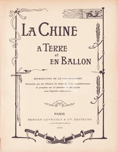 1900年,八国联军中的法军,在北京和天津首次使用了热气球进行侦查,并留下一批航拍的照片。法国军队回国后,为了纪念他们的这次远征,从这些航拍照片中挑选了一部分,结合一部分在陆地拍摄的照片,1902年小范围的出版了一本《LA CHINE A TERRE ET EN BALLON》,这本书有个包袱皮式的封套,打开后是目录和说明文字,最后是散页形式的内页,共41页。这本书的内容和视角很少见,因此很珍贵,我曾经有四篇从这本书延伸出来的博文: