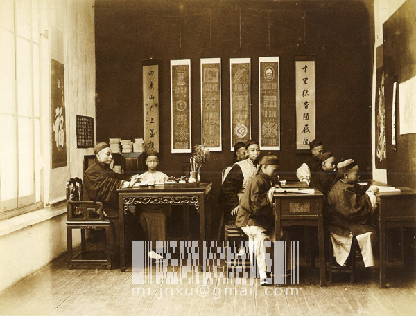 以前写过一篇博文“被遗漏的早期在华商业摄影师之一——格里菲斯”,里面贴的三张照片是他拍的香港男校,从“教室”的布置我认为是在照相馆内拍摄的。今天故纸园丁同学提供了一张图片,是清末的明信片,内容同样是摄影室,布局和桌椅板凳也没大变化,只是男生变成女生,是反映教会女学校的照片。